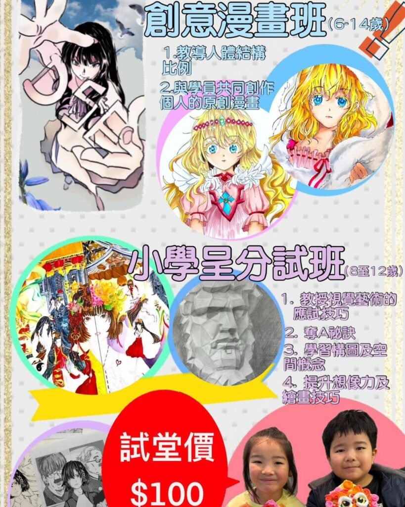 藝術學習追尋夢想的藝術之旅我們提供世界級藝術比賽課程,幫助孩子們提升創意和技能,開啟藝術天賦立即報名 關於我們Day Dream Art 的藝術教育與使命Day Dream Art致力於培養2.5至13歲兒童的藝術才能,讓他們在藝術領域中茁壯成長。閱讀更多 我們提供的服務各類藝術課程與培訓 比賽特訓課程專為準備升學的小朋友設計,提升其藝術技能。閱讀更多 動漫恆常班針對動漫創作的課程,適合不同年齡層的小朋友。閱讀更多 視藝呈分試特訓專為4-6年級學生設計的特訓課程,提高視藝考試的成績。閱讀更多 如何運作讓藝術學習變得簡單了解我們的教學流程與方法 報名課程選擇合適的課程並報名,開始您的藝術學習之旅。 參加課堂在專業老師的指導下,參加課堂,學習藝術技巧。 展現作品參加國內外比賽,展現您的藝術才華。 同學作品Day Dream Art 的得獎作品展現了學生們非凡的創意與藝術才華。這些作品涵蓋了多種藝術風格與媒材,包括水彩、壓克力畫、素描與數碼藝術,每一幅作品都充滿了個人特色與精湛技術。透過專業的指導與長期的練習,學生們在國際與本地藝術比賽中屢獲殊榮,證明了他們的努力與熱情。他們的作品不僅展現了優秀的構圖與色彩運用,還蘊含了豐富的情感與故事,讓觀眾深受感動。Day Dream Art 鼓勵學生大膽創作,將自己的想法轉化為獨特的藝術作品,並透過參賽提升自信與技術。每一幅得獎作品背後,都代表著學生的成長與突破,象徵著他們在藝術道路上的堅持與夢想。這些作品不僅是對學生努力的肯定,更激勵更多年輕藝術家勇敢追求自己的創作之路。未來,Day Dream Art 將持續培育新一代藝術人才,讓更多優秀作品在國際舞台上發光發熱。